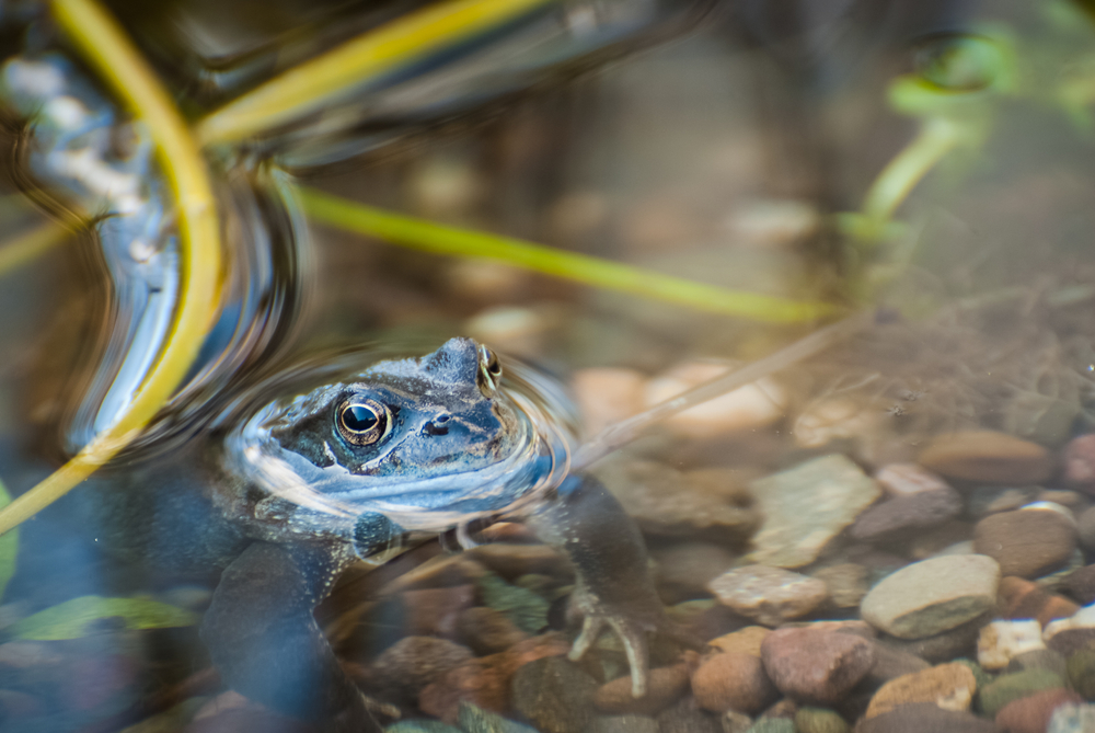 - Zorg ervoor dat de randen niet te steil aflopen. De kikkers en salamanders moeten de vijver in en uit kunnen, dus zorg (op een aantal plekken) voor vlakke hellingen.